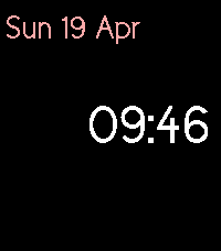 A simple digital watch face, with battery status and seconds displayed on tap/shake.