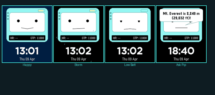 Meet Pip, your tiny robot companion on your wrist. Now with voice-powered AI — Pip actually talks back. Pip reacts to your world — her mood shifts throughout the day, she dims quietly at night, perks up when the weather turns stormy, and lets you know when the battery is running low. ⸻ New: Ask Pip Your wrist-sized robot friend who actually talks back. Long-press SELECT and ask anything out loud. Pip listens, thinks, and replies right in her speech bubble — from weather and trivia to quick math and more. Powered by Claude AI. To enable, open Pip’s settings in the Pebble app and paste your Claude API key (free at console.anthropic.com). ⸻ Features: • Animated robot character with time-of-day mood system • Live weather reactions (rain, clouds, lightning effects) • Heart rate & step count display • Battery indicator • Night mode with auto-dimming • Quiet Time support • Timeline Quick View compatible • Voice-powered assistant (Ask Pip) — just long-press SELECT and speak ⸻ Setting up Ask Pip: 1. Install Pip on your watch 2. Open the Pebble app → tap Pip → tap the ⚙️ gear icon 3. Enter your Claude API key (get one free at console.anthropic.com) 4. Long-press SELECT on your watch and ask away