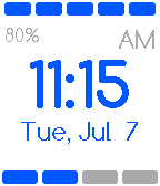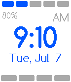 Easy Time is a watchface that lets you read the time with ease! How often does someone ask you the time and you look at your precious Pebble Time and you see 11:17 and have say eeh, it's 11:15!? Easy Time truncates the time in five minute blocks and shows 9 bars (on the top and bottom) which will indicate the exact minute, so you can still see what time it is exactly with ease :) The watchface shows the approximate time, the actual minutes (in bars), the date (with abbreviated day name) and the battery percentage of your Pebble Time.