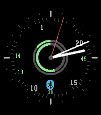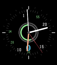 A clean analog watchface with a 24-hour dial running anti-clockwise.
