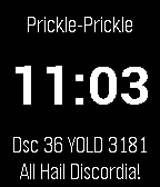 A Discordian celebration of time! This highly configurable watchface includes three different analog faces that can be combined with text or disabled. You can see the current date in the Discordian calendar. You can be notified if you lose touch with your phone or your phone's battery gets too low. You can discover the secret treats. Or you can be a Greyface and get rid of all that Discordian nonsense. Can you see the fnords?
