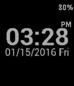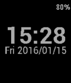 A minimal, yet configurable, watchface: - time, both 12 and 24 hours clock - current date (format: yyyy/mm/dd, mm/dd/yyyy, dd/mm/yyyy) - name of the day in the current language (to the left or right of the date or not present) - battery percentage - bluetooth connection indication (only when connection is missing)