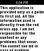 This watchapp is created as a first aid guidance to a number of problems that may occur. This guidance information is taken from the red cross app. Please read the disclaimer and use only if you agree (last title on watchapp)
