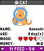 FitCat features both a virtual pet and an activity tracker in a single watchapp. Watch Gnocchi, your cat, live his own life on your wrist. What he does depends on what YOU do: if you are walking, he will be walking too. If you are chilling, he will be chilling too. The more you move, the more virtual money you earn. Then you can use that money to interact with Gnocchi and make him happy. FitCat is the funniest way to live an active life. Features: - Different animations of the cat - Many environments - Integrated mini game - Background worker for step counting - You can set your daily step goal and see your achievements PLEASE NOTE THAT THIS BLACK&WHITE VERSION OF FITCAT HAS LESS FUNCTIONALITIES THAN THE COLOR ONE. If you like FitCat, give it a heart ! <3 There is still a lot more to come ... To stay tuned, follow me on Twitter : @PaulKubGames