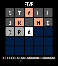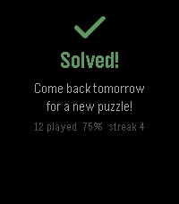 A daily word puzzle for your wrist, a wordle clone ;). Guess the five-letter word in 5 tries. Letters turn green (correct), yellow (wrong spot), or gray (not in word). One new puzzle every day -- play it on the go in seconds. Tracks your stats, win percentage, and streak. Supports Pebble Time 2 and Pebble Time Round.