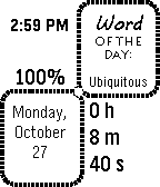goto stopwatch to train for your next 5K. goto battery charge level for seeing how much juice is left in your Pebble. goto daily word challenge to build your vocabulary. goto Pebble Watchface.
