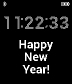 A simple watchface with a 'Happy New Year!' text.