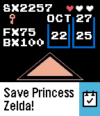 This watchface was written for Time and Round to make use of the new health metrics which the classic Pebble does not have. That doesn't mean you still can't enjoy it! This version simply has all the health features removed. Battery level is to the left of date and time and is indicated by "BX". Temperature is to the right of date and time and is indicated by "FX" for Fahrenheit and "CX" for Celsius. Hearts indicate a Bluetooth connection. No hearts indicate no connection. Temperature (C/F) and Time (12/24) are configurable.