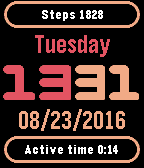 Clear watchface with Activity display and Heartrate monitor (on Pebble2/Core2 duo only!). Supports English, Dutch, German, French, Spanish and Italian. Colors fully configurable. Battery load warning on 50 and 20 percent load with change of background color. BT con warning with optional buzz. QuickView enabled. US/European date format support. Battery friendly. Just $3.95. Now includes display of walked distance, calories burned and sleepdata.