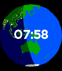 A view of earth from space inspired by the blue marble and hello world images from Artemis and Apollo missions. Presents a fixed view of earth with a transition from day to night (approximate in half hour increments), focussed over Oceania and Southeast Asia - so great if you live in Australia, at a similar longitude, or you just want to experience the vibe of living that part of the world through your Pebble. I'll will endeavour to draw up more parts of the world in time...