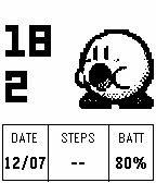 Bring a blast of retro charm to your Pebble! This watchface features an animated, Kirby sprite inspired from Kirby's Dream Land. The time is displayed digitally 12hr and 24hr. style and is beautifully integrated with Kirby's animations. It also clearly shows the Date, Steps, and Battery life. Enjoy the fun animation, Kirby Inhales the old digits, swallows, and shoots out the new digits! Shake for a fun surprise! Designed for Pebble 2 duo, should work for classic and 2 :) not optimized for time platforms.