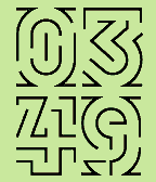 Digital watchface with the 4 numbers forming a shape that looks like a labyrinth. Screenshots: 08:21, 03:49, 16:57 (24-hour setting on Pebble)