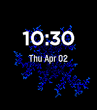 Randomized Lichtenberg Fractal which grows each minute! Color gradient shows timescale of growth. Resets when screen gets too full. Fun to watch the evolution over time too (pun fully intended).