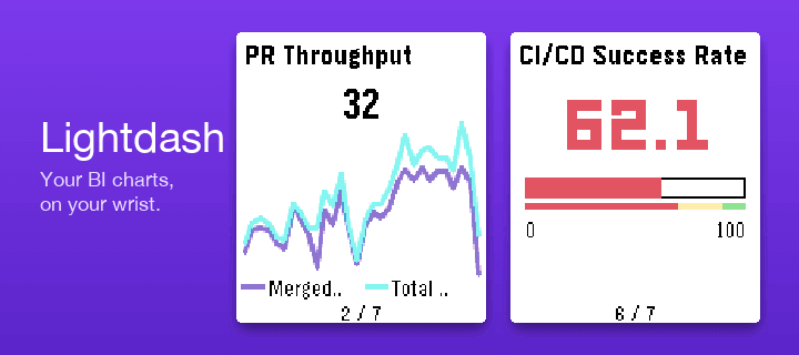 A Pebble watchapp that rotates through your Lightdash saved charts. Glance at your BI numbers from your wrist. No phone needed once the tiles load.