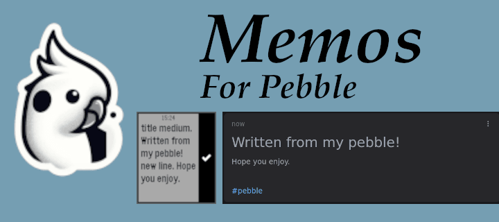 A very simple app to connect with your self-hosted Memos server and quickly send thoughts or ideas straight over! Requires dictation. https://github.com/usememos/memos Use keywords such as: check box -> - [ ] title (big/medium/small) -> (#/##/###) new line -> \n hashtag "word" -> add a tag --------------------------------- These take advantage of Memos use of markdown (.md) to 'fancify' your notes. May add the ability to pull your memos from the server to view on your watch at some point. We shall see. I have only tested on the old iOS pebble app, and a pebble time.