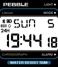 This is not just another Casio like watch face, this application includes several interactive complications that can be used without a phone. Cycle through the complications with the SELECT button: 1) Time and date (with quick countdown timer) 2) Alarm and hourly chime 3) Stopwatch with 1/100s accuracy and lap time 4) Countdown timer 5) Dice roll (2, 4, 6, 8, 10, 12, 20, 100 faces dice) The following can be configured: - Title at the top (PEBBLE by default) - LCD display background and color - Power saving (how long before the display enters slow refresh rate mode) More: - Pixel perfect LCD digits rendering. - Supports any Pebble platform, from the original to the Time Round 2. - Power efficient Technical details: This application emulates the embedded operating system of the custom F91W board "sensor watch", making it possible to use any face in the "sensor watch" catalogue on Pebble.
