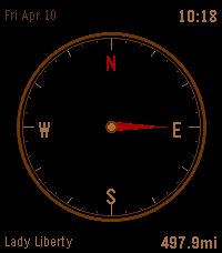 Compass/directions app with date, time and 3 different faces. Add up to 6 locations to track in the settings. Use Up & Down to cycle between locations and see distance and heading. Watches step tracker approximates distance updates in between Phone GPS polling (customizable interval in settings). Press Select to manually refresh location/distance data.
