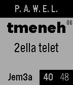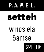 PAWEL your Pebble Arabic WatchFace with English Letters !A funny way to read the time in arabic as you speak it using the internet language (English letters and numbers) to printout the time .The WatchFace consists of the hour then the minutes in letters and in the corner ,on the right the seconds and on the left the minutes in bold :D !