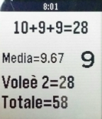 Archery score Simple sum of score values UP or DOWN to choose point (1,2,3,...10) MIDDLE to add MIDDLE long press to delete last entry
