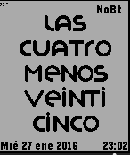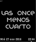 Reloj que muestra la hora de forma coloquial, en castellano, no exacta de la forma: 10:23 => diez y veinticinco 10:43 => once menos cuarto