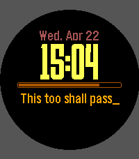 Simple Reminder phrase + gruvbox/retrobox-inspired shell colorscheme First time Pebble Watch Face. Motivated to start for the 2026 Spring contest. Many things left to build.