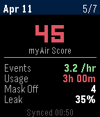 CPAP sleep stats from ResMed myAir