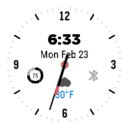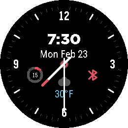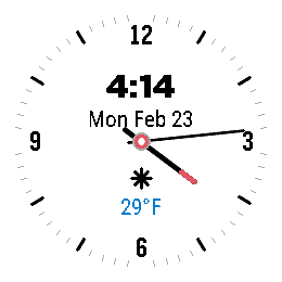 Simple Round is a simple analog watchface for the Round 2. Built with Alloy! - Center info cluster: time, date, weather icon, temperature, battery, bluetooth (all can be hidden in settings) - By default, the battery icon will only appear when battery is low (under 20%) and the bluetooth icon only shows up when disconnected - Weather via Open-Meteo (no API key required) Settings page in the Pebble app: - Light/Dark theme toggle - Fahrenheit/Celsius toggle - 24hr Time toggle - Show/Hide Time - Show/Hide Date - Show/Hide Weather - Show/Hide Battery - Show Battery When Low (Under 20%) - Show/Hide Bluetooth - Show/Hide Bluetooth Disconnected