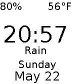 Simple design with - Time - Date - Battery life - Weather temp - Weather condition Fahrenheit is the only supported measure of temperature at the moment. The option to switch between Celsius and Fahrenheit will be implemented soon.