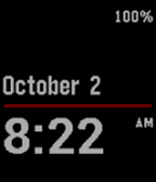 Based on "Simplicity", this watchface shows the date, time, am/pm, bluetooth connection status, and battery status. Short double-vibe indicates when bluetooth connection has been lost. Also the line between the date and time changes to red when not connected. The watchface was designed to be efficient with the battery, no extra screen changes and double-vibe will not happen more than once in a 10-minute period.