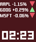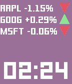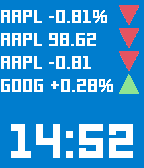 Shows you stock data for up to 4 stock symbols --Features-- -Optionally vibrate every hour -Optionally vibrate on Bluetooth disconnect *After a 24-hour free trial the watchface will cost 0.99$