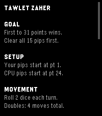 Tawlet Zaher (Backgammon)yo!Try in Browser9WatchappDescriptionBackgammon variation commonly played in the Middle East.Developeryo!CategoryGamesPlatformsTime 2Updated2026-04-05Version1.2MORE FROM THIS DEVELOPERDOWNLOAD PBWVERSION INFORMATION