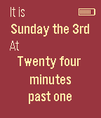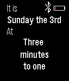 Shows the date and time as text. Shows the battery percentage in the top right, represented by a series of vertical bars. Shows an icon and vibrates if you lose connection to the Pebble app. As of 1.3, their is also a config for colours. As of 1.4, the battery and Bluetooth icons are colourable. As of 1.5, the watchface now looks nicer :) As of 1.6, there is also a config for fonts. What else do you need from a watch face?* Screenshot 1: Sun 3, 12:45, Bluetooth connected at 100% battery Screenshot 2: Sun 3, 12:57, Bluetooth disconnected at 20% battery Screenshot 3: Sun 3, 01:24, Bluetooth connected at 80% battery *Currently working on (in no particular order): ◇Charging icon ◇Optional Step/Sleep widget at the bottom ◇Optional weather widget ◇A config for optional widgets Either email me or send me a PM (www.reddit.com/user/sish101) if you have any suggestions on other features, or improvements to current ones.