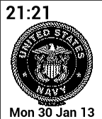 Another Navy face by me, this one digital. For Pebble OS2. V2 is redesigned for bigger logo, and year included, bigger Time font. Not official of course!