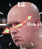 6 Dart images of van Gerwen and his usual throw. With BT connection warning (optional) and battery status in the 9 marker.