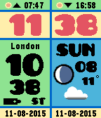 The ultimate World time clock for Pebble Time, Pebble 2 and Pebble Round. Configurable for 35+ cities/time zones, including half-hour offset zones. Now supports 3 favorite time zones. Cycle through the 3 favorites with a flick of the wrist, no need to use the phone to switch between favorite timezones. Other features: Supports 12/24 hour local clock with A/P indicator. Weather icon with temperature in C or F (local weather). Moon phase display. Battery icon. Local sunrise and sunset time. Days of week in English, Dutch, French, German, Italian, Spanish and Klingon. A-Grade energy friendly (extremely low battery usage). BT disconnect warning (temp goes red with optional vibration). Keeps track of DST and timezone date. DST on dual time can be set to Automatic (recommended), On or Off. This watchface is also available as a Watch App. Even more information and completely configurable from your wrist! Now includes an on-board compass! Price $4.95. This is a bundle offer. If you purchase this watchface you can download the watchapp (same name) for free!